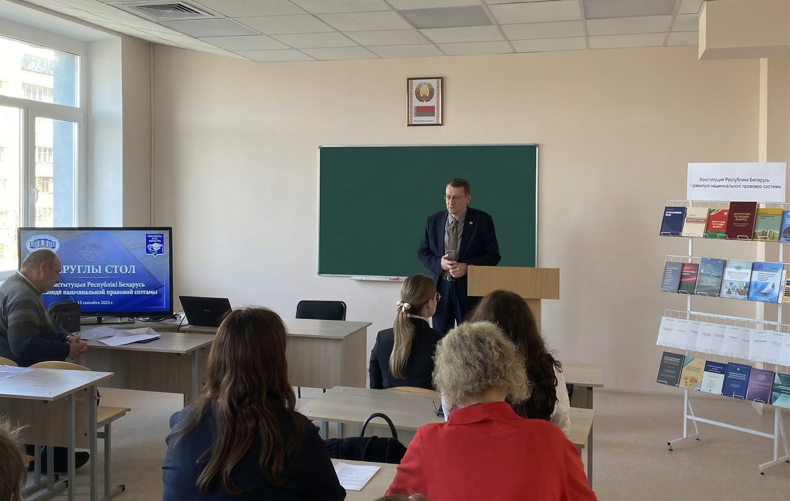 Участники круглого стола обсудили вопросы, связанные с ролью и местом Конституции Республики Беларусь в развитии национальной правовой системы. Также были рассмотрены перспективные направления совершенствования законодательства в современных условиях исходя из идеологических императивов правовой политики.