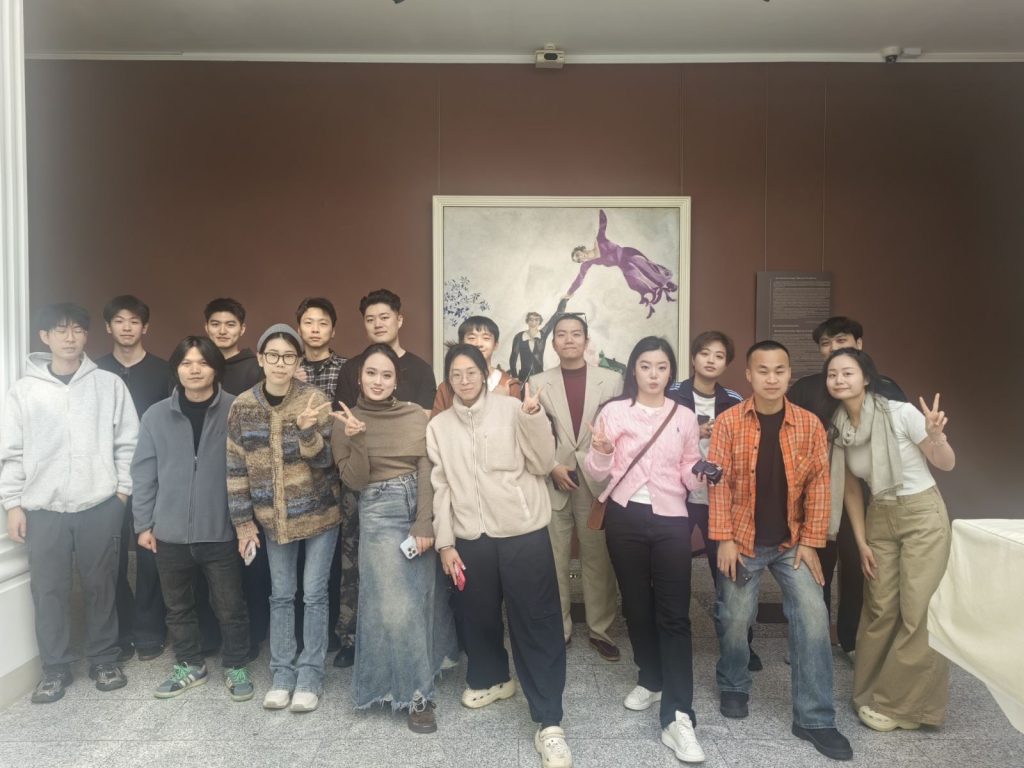 23 апреля в рамках научно-исследовательской практики состоялась экскурсия китайских магистрантов специальности Искусствоведение в Национальный художественный музей. Китайские студенты ознакомились с постоянной экспозицией музея, осмотрели привезённый из Русского музея Санкт-Петербурга шедевр Марка Шагала, картину «Прогулка», и смогли совершить виртуальную прогулку в VR-очках по творчеству нашего знаменитого земляка. Компетентное описание произведений и сопровождение экскурсии осуществила преподаватель кафедры социально-гуманитарных дисциплин Садовская Анна Андреевна
