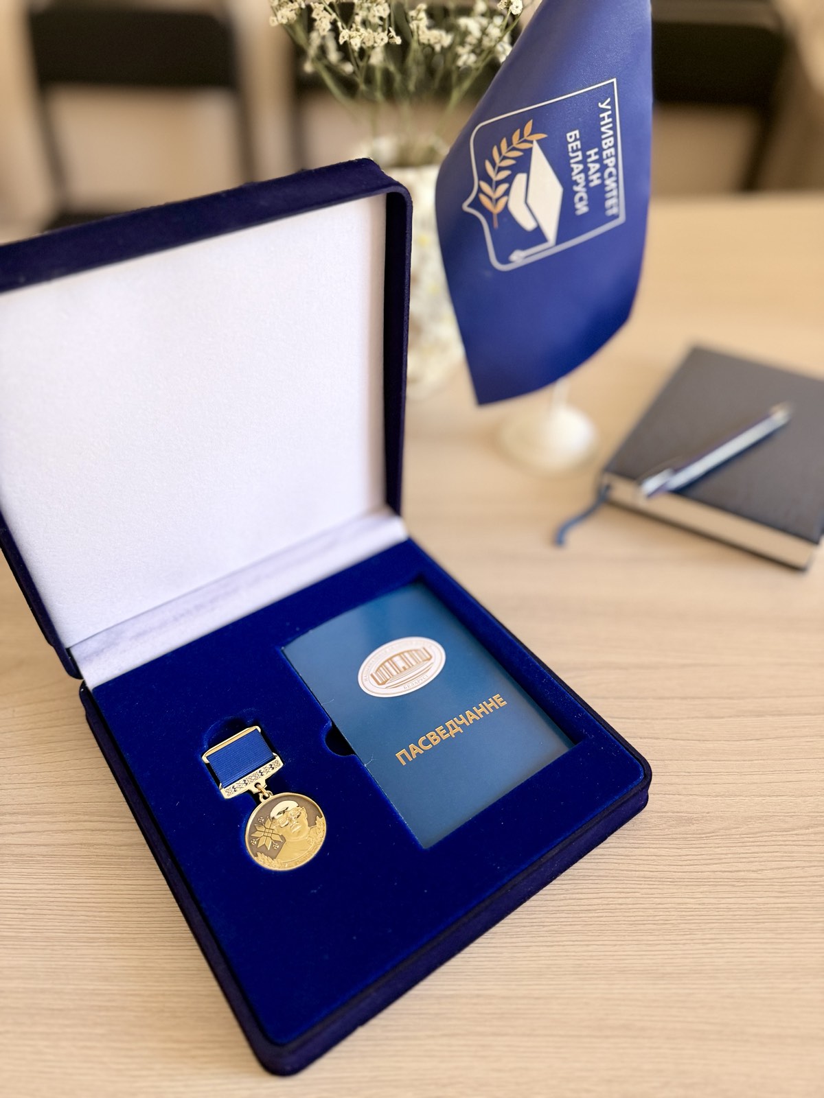Коллектив Университета поздравляет ректора Марата Геннадьевича Жилинского с вручением нагрудного знака отличия имени В.М.Игнатовского Национальной академии наук Беларуси, за значительный личный вклад в развитие науки и образования, плодотворную деятельность по подготовке научных кадров высшей квалификации, а также укрепление международного научного сотрудничества и в связи с 50-летием со Дня рождения. Нагрудный знак занесён в Национальный геральдический регистр Республики Беларусь.