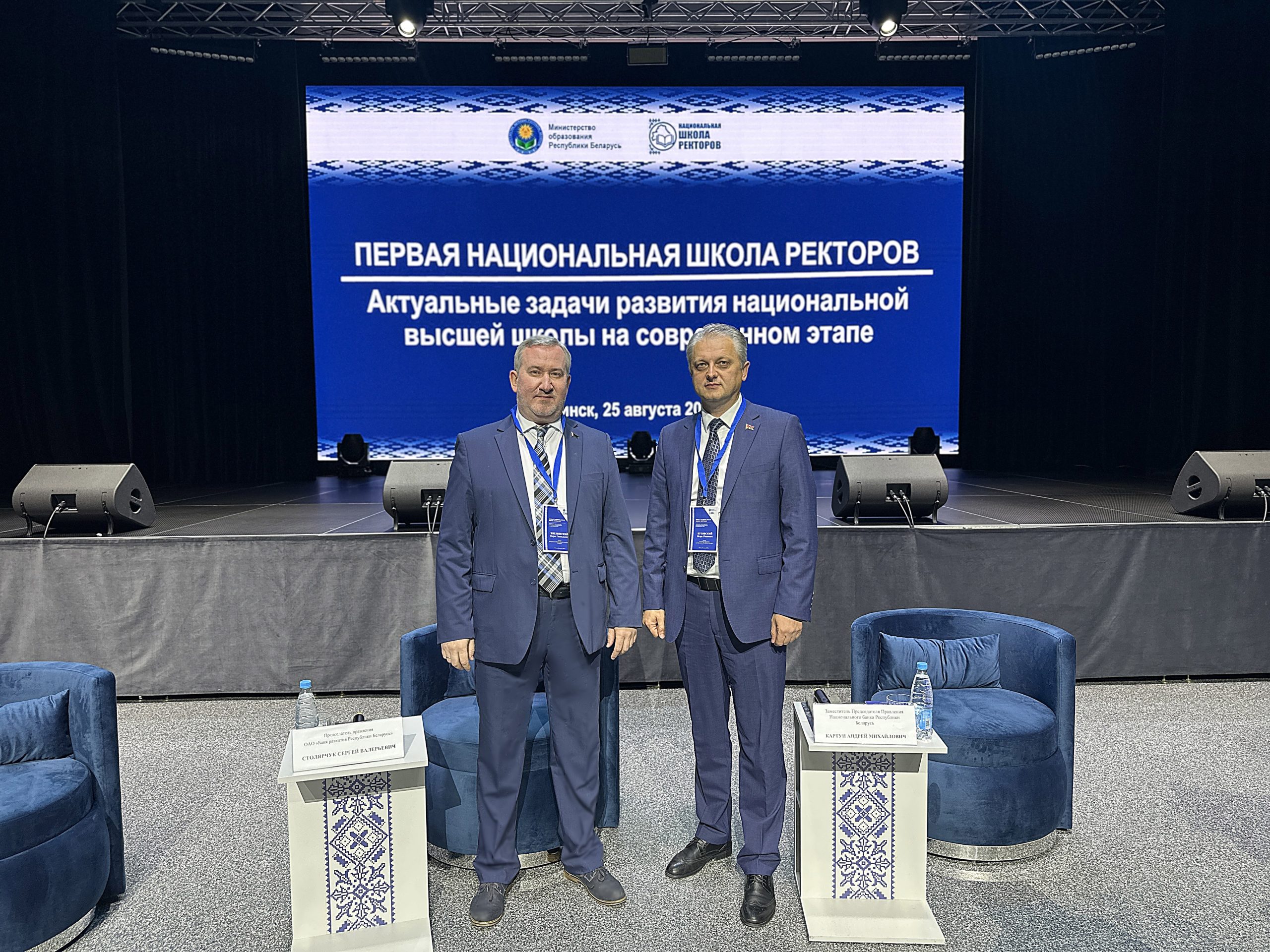 В работе «Национальной школы ректоров» приняли участие руководители ведущих вузов страны, эксперты и представители государственных органов, в том числе председатель Центральной избирательной комиссии Республики Беларусь Игорь Карпенко, министр образования Республики Беларусь Андрей Иванец, депутат Палаты Представителей Национального Собрания Республики Беларусь, председатель правления РГОО «Белорусское общество «Знание» Вадим Гигин.