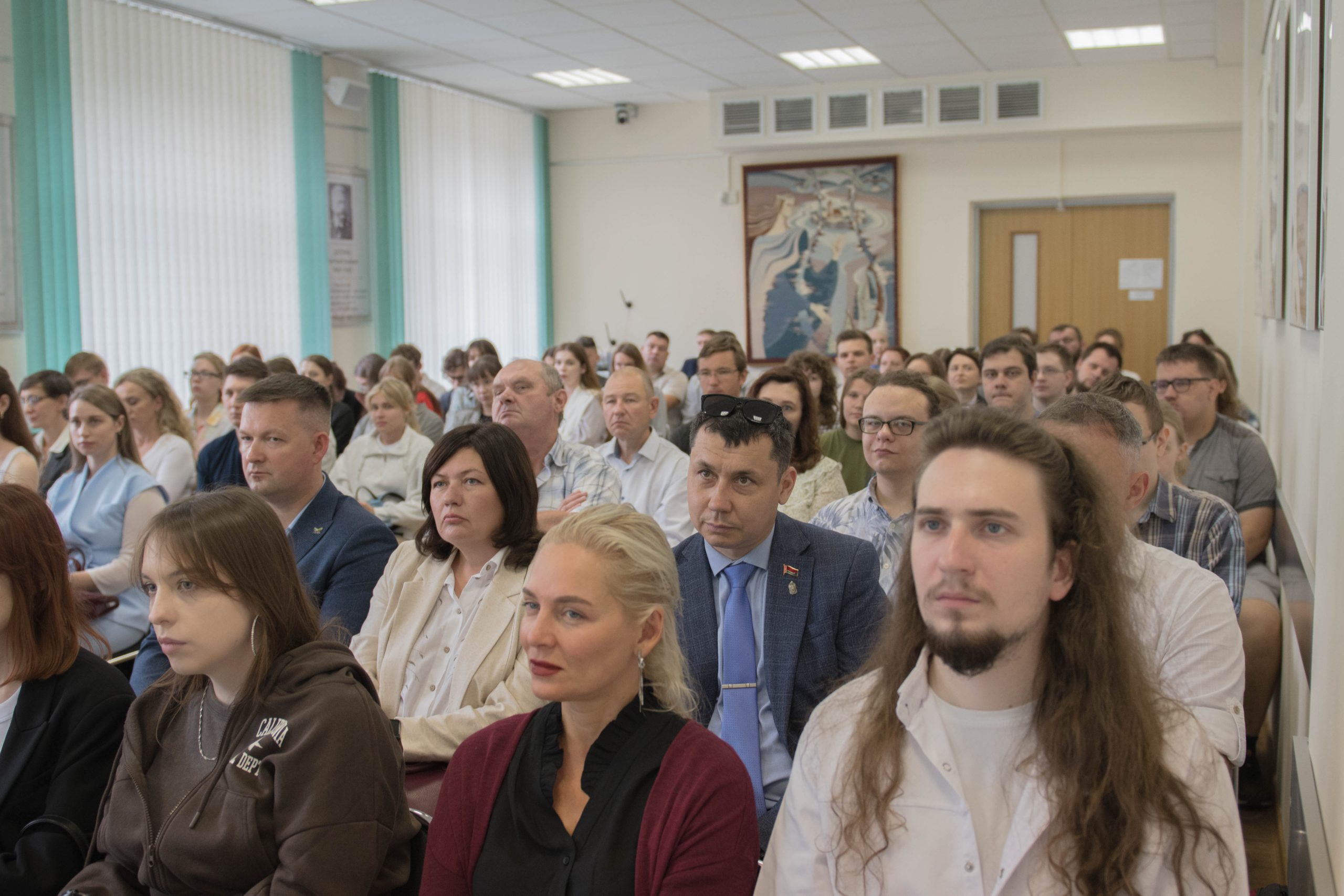 После официальной части мероприятие продолжилось в формате открытого диалога, где магистранты смогли задать вопросы, касающиеся учебного процесса, научных направлений и возможностей, предоставляемых Университетом НАН Беларуси. Также участники мероприятия смогли ознакомиться с тематической выставкой «Издания Национальной академии наук Беларуси: научная книга 2024–2025».