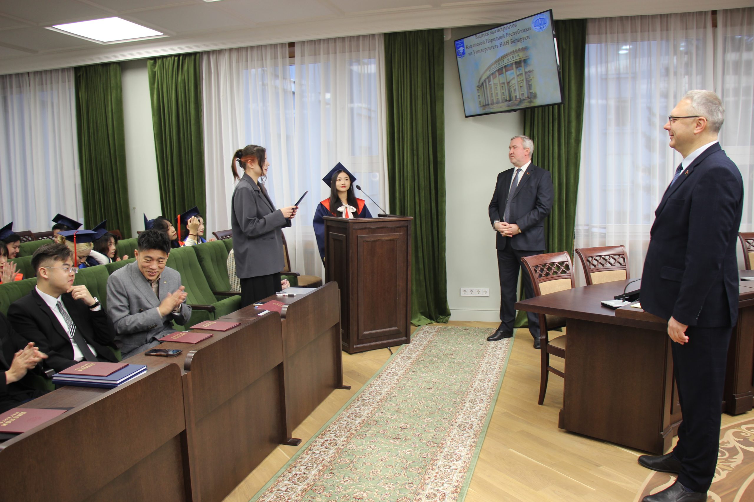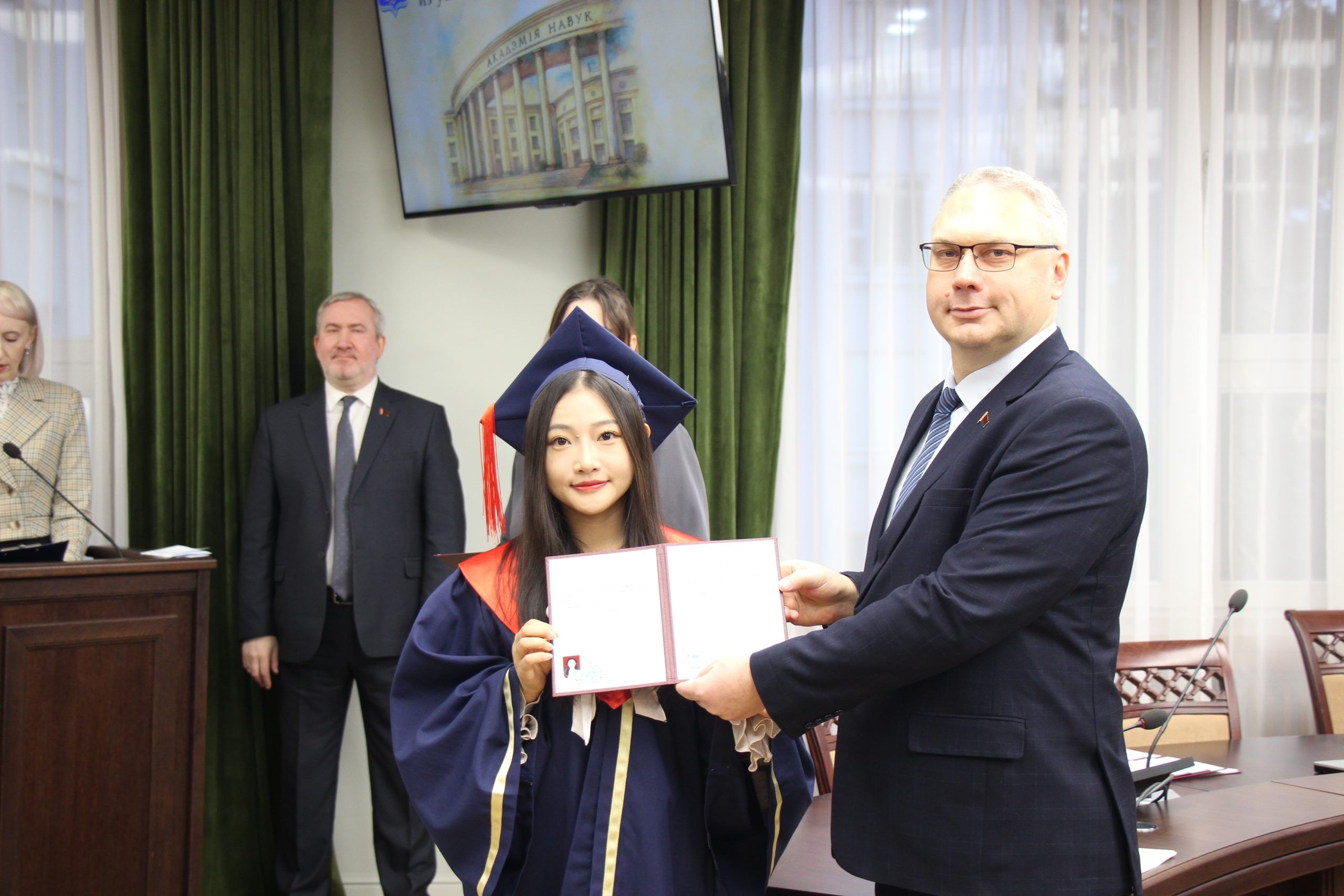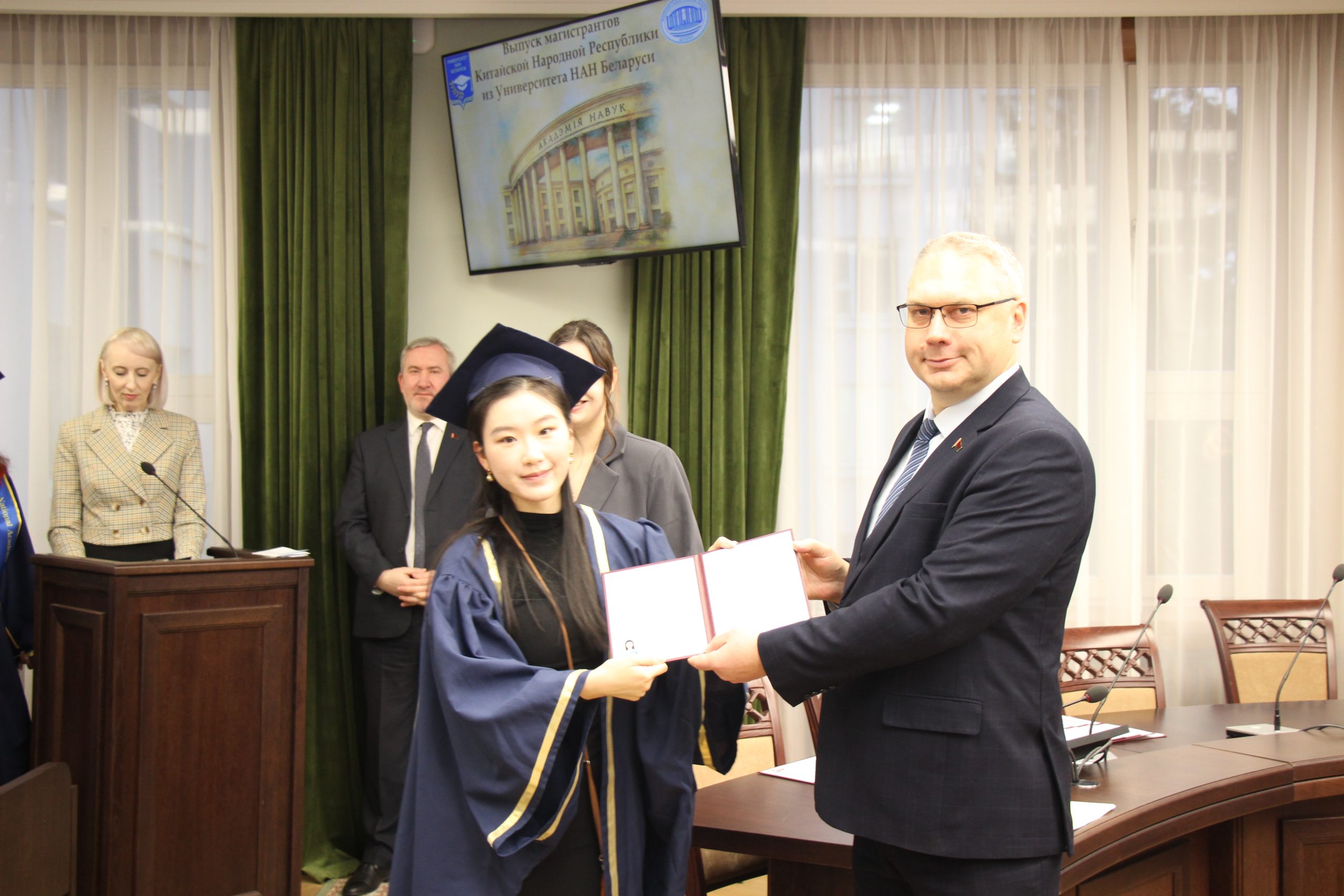 28 ноября 2025 года в Президиуме НАН Беларуси состоялась церемония вручения государственных дипломов Университета НАН Беларуси выпускникам магистратуры из Китайской Народной Республики.